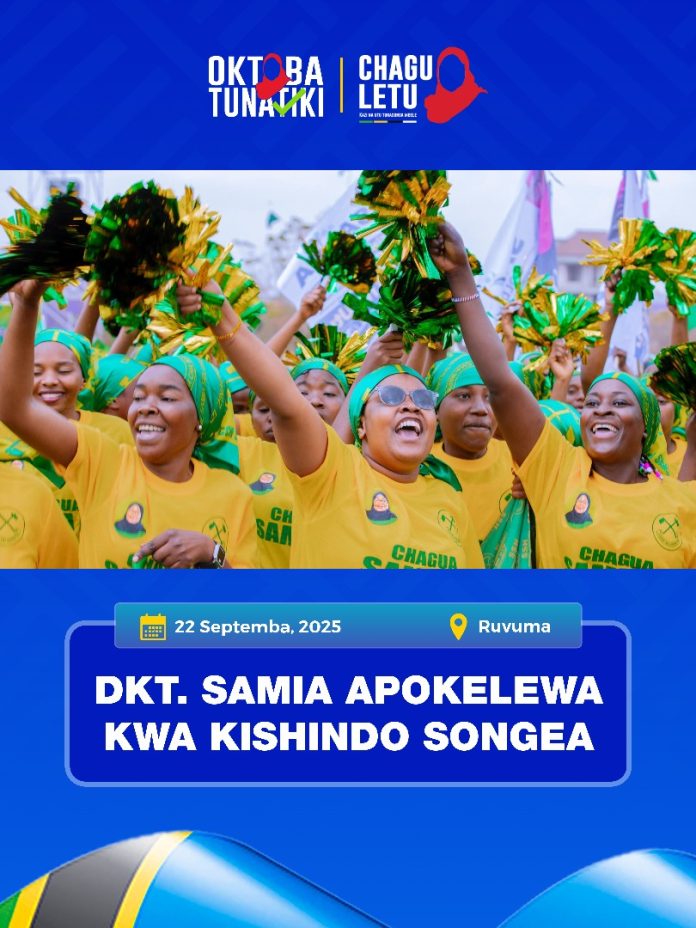 Mgombea kiti cha Urais kupitia CCM Dkt. Samia Suluhu Hassan amewaomba wananchi wa mji wa Songea kujitokeza kwa wingi na kukipigia kura chama cha Mapinduzi (CCM) katika uchaguzi mkuu utakaofanyika mwezi oktoba mwaka huu ili kufanikisha ujenzi wa kongani ya viwanda katika wilaya ya Songea.